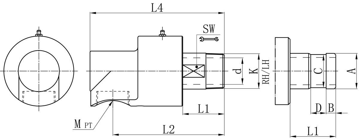 Model K M d L1 L2 L4 SW 法蘭式外管尺寸對照表