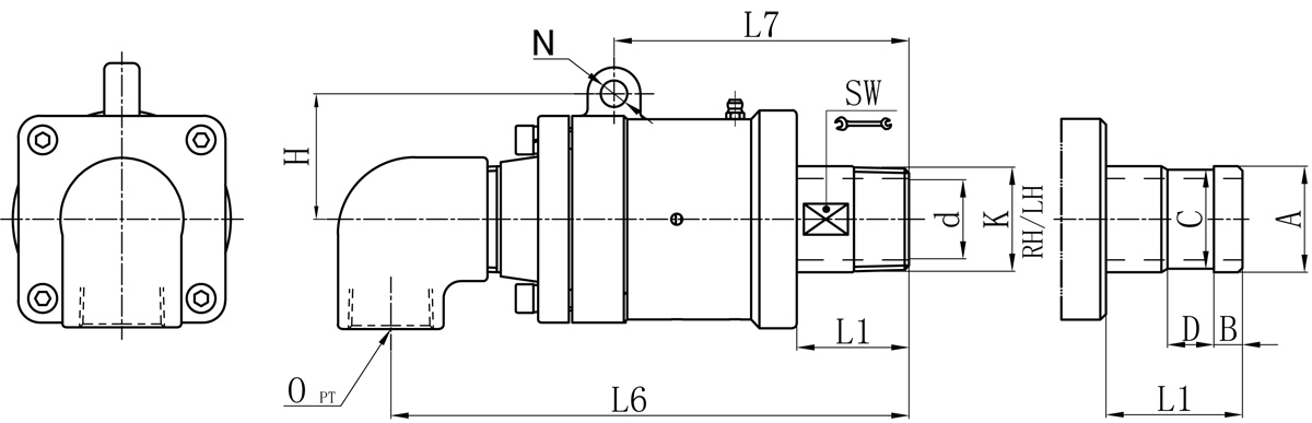 Model K O d L1 L6 L7 N H SW 法蘭式外管尺寸對照表