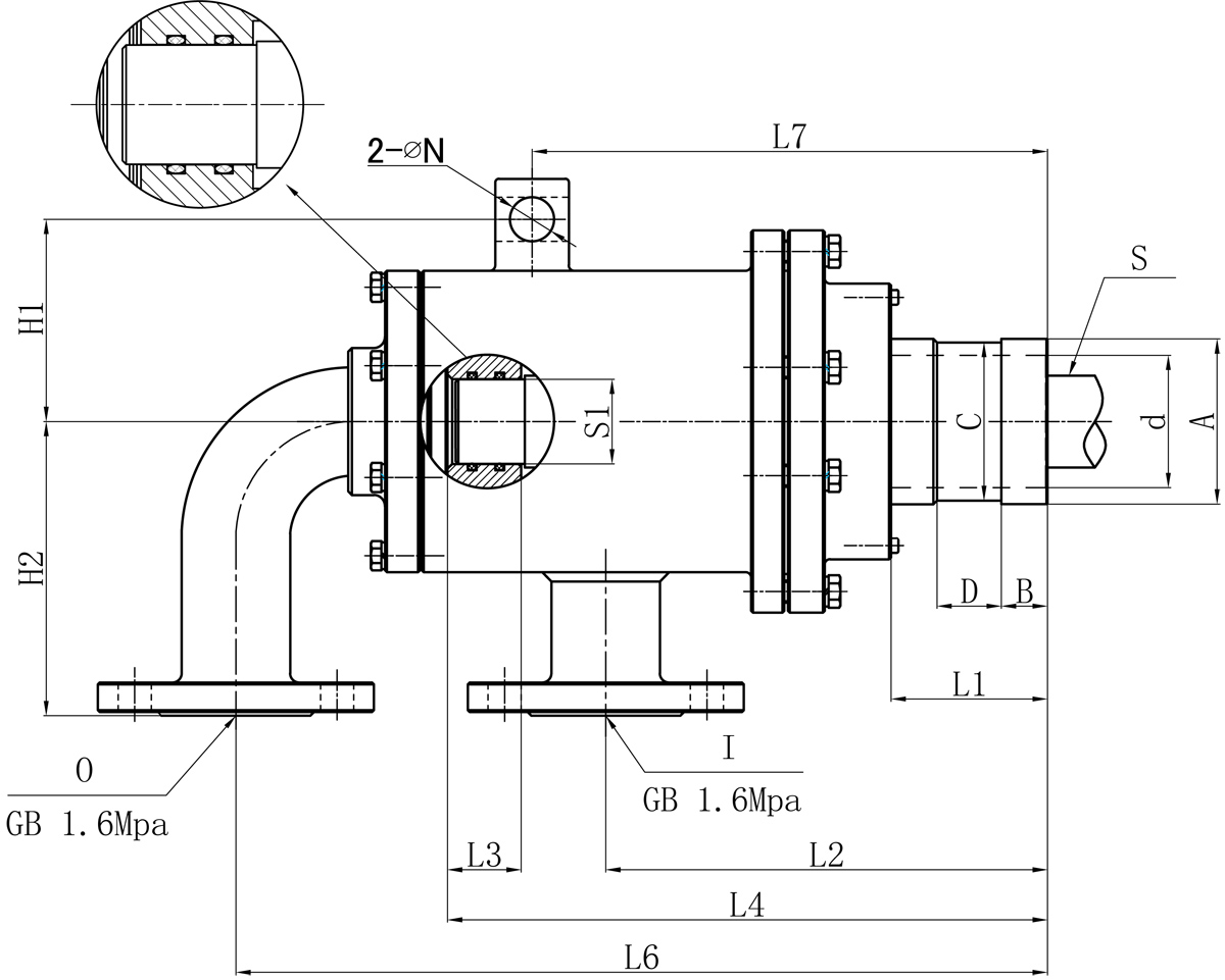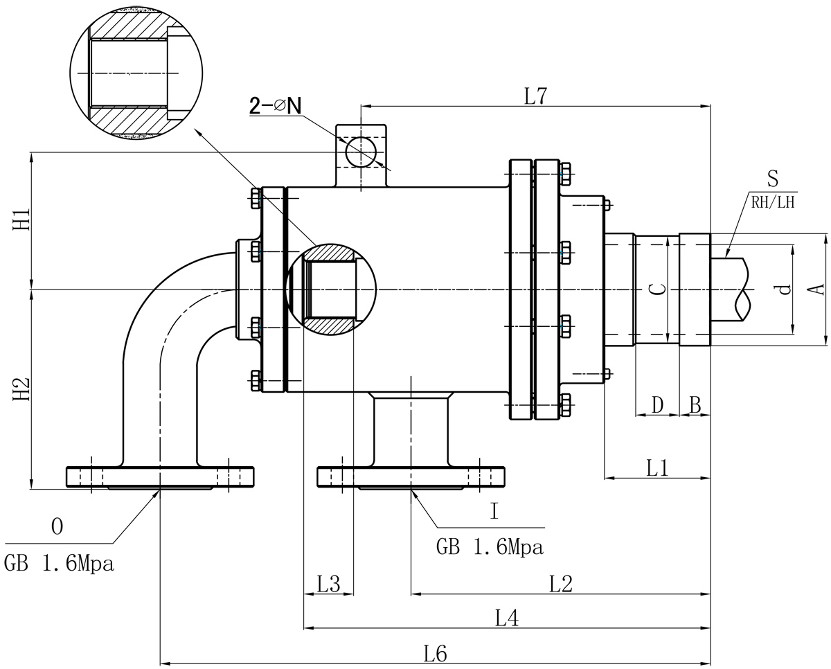 Model I O S1 d L1 L2 L3 L4 L6 L7 N H1 H2 法蘭式外管尺寸對照表